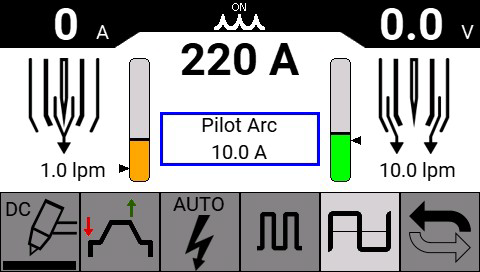 Навигационное меню панели управления четко отображает значения всех параметров процесса, идентифицирует и выделяет любые вносимые изменения, а также предоставляет четкий обзор текущих операций (регулировка плазмы и защитных газов).