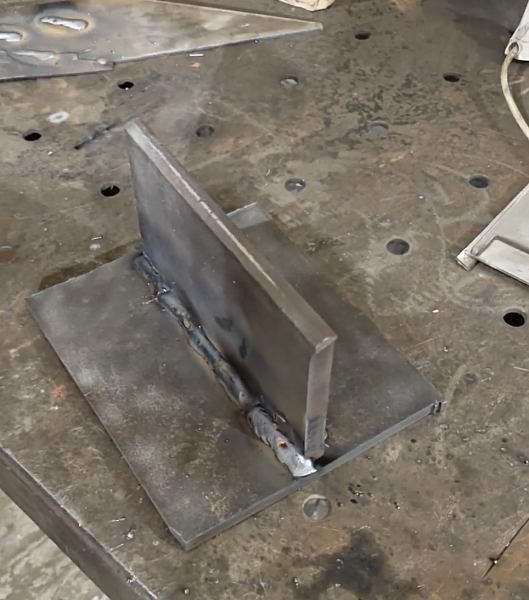 RSSИспытания проводились на заготовках средней толщины, порядка 5 мм. В частности, были выполнены вертикальные швы снизу вверх в обоих режимах, демонстрирующие аккуратный результат.